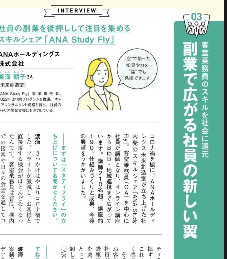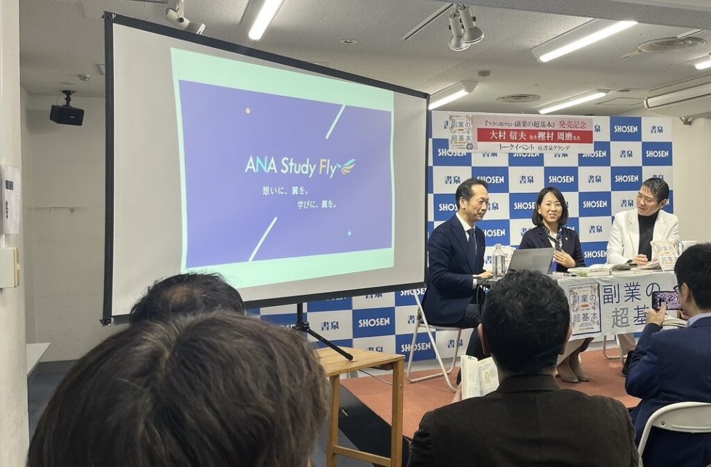 ANA Study Flyの取り組みをご紹介いただいている『今さら聞けない 副業の超基本』(朝日新聞出版)の出版記念イベントが開催され、ANA Study Fly事業責任者の渡海が登壇いたしました。